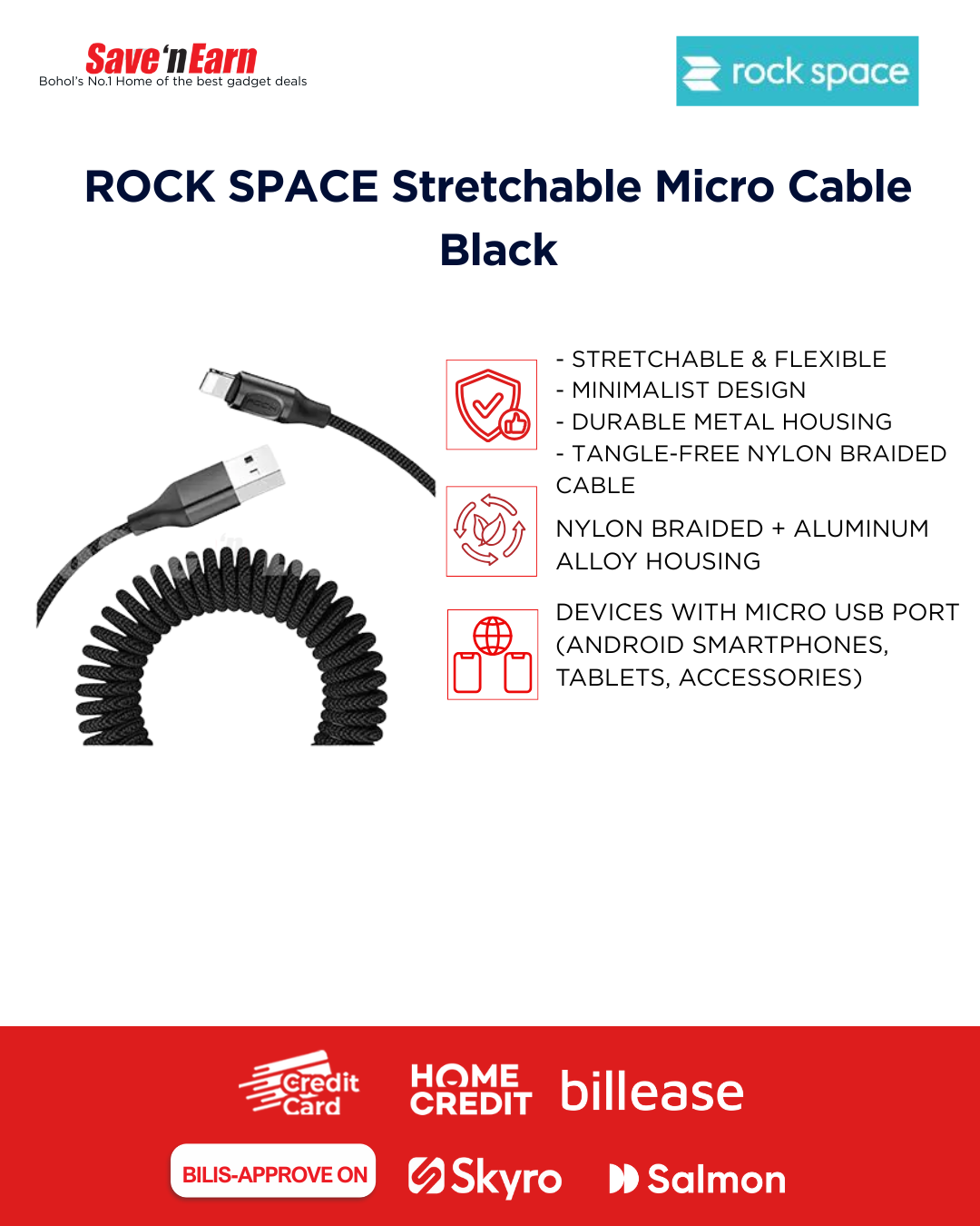 - ROCK SPACE Stretchable Micro Cable Black ROCK SPACE Stretchable Micro Cable Black