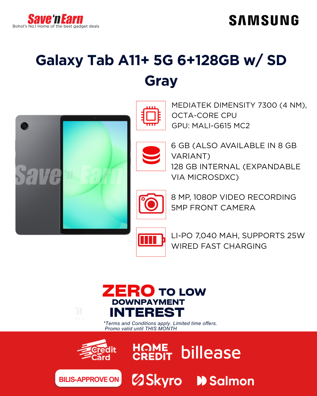 - Galaxy Tab A11+ 5G 6+128GB w/ SD Gray Galaxy Tab A11+ 5G 6+128GB w/ SD Gray