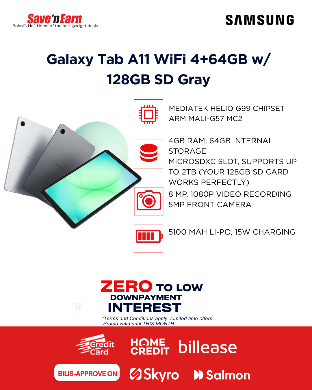 - Galaxy Tab A11 WiFi 4+64GB w/ 128GB SD Gray Galaxy Tab A11 WiFi 4+64GB w/ 128GB SD Gray