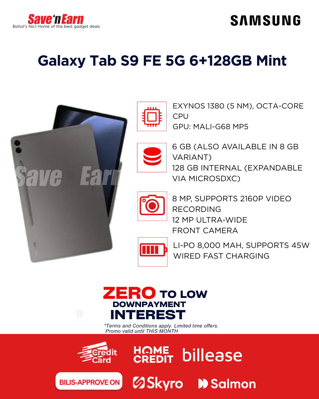 - Galaxy Tab S9 FE 5G 6+128GB Mint Galaxy Tab S9 FE 5G 6+128GB Mint
