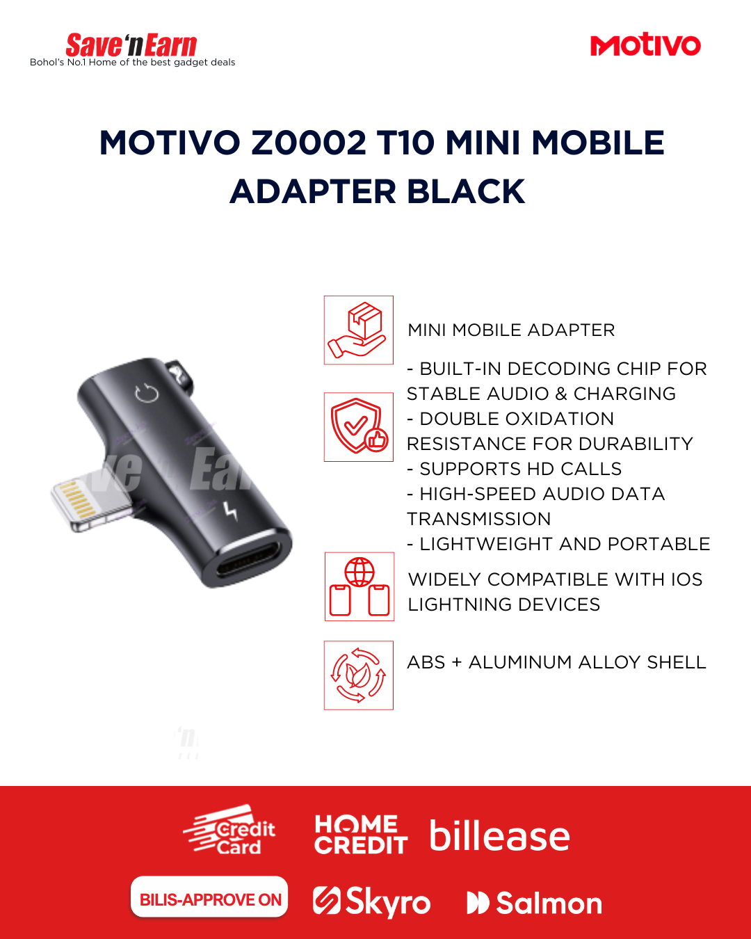 MOTIVO Z0002 T10 MINI MOBILE ADAPTER BLACK SPECIFICATIONS