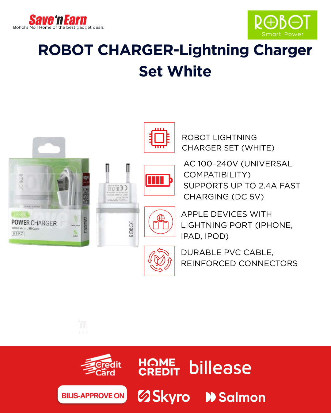 | Brand / Model | ROBOT Lightning Charger Set (White) |
