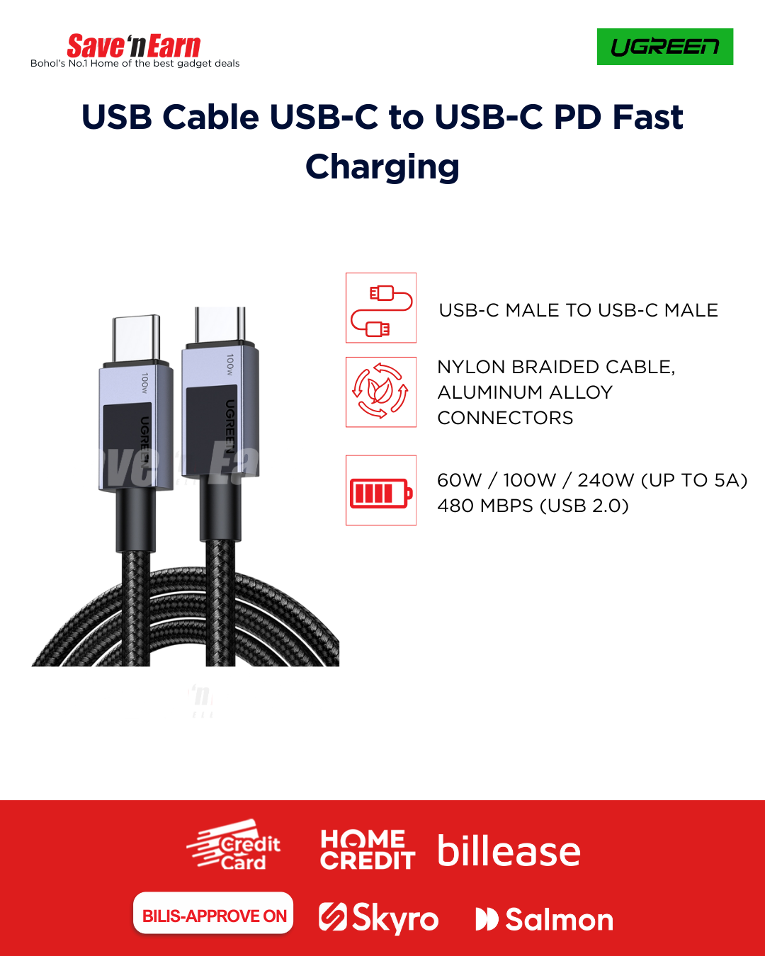 • Ugreen USB Cable USB-C to USB-C PD Fast Charging Ugreen USB Cable USB-C to USB-C PD Fast Charging